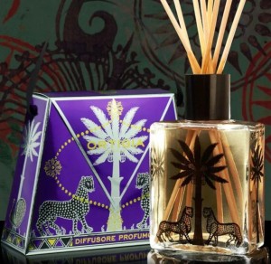 Naturalne patyczki w uroczej, szklanej butelce z charakterystyczną dla marki Ortigia Sicilia palmą i dwoma leopardami. Pachnący płyn przepływa przez sztyfty, uwalniając subtelny i ciągły zapach kwiatu pomarańczy i pachnącego cedrowego drewna.